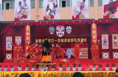 5月31日,赤壁市营里小学举办“庆六一戏曲进校园专场演出”活动。《七品芝麻官》、《小脸谱》、《戏曲串烧》、《小戏迷》等一个个戏曲节目轮番上演,服饰华丽,妆容精致,唱段韵味醇美,唱念走台惟妙惟肖,获得了台下观众的阵阵掌声。
