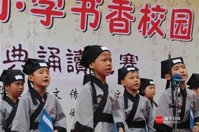 6月8日,咸安区车站小学结合学校的特色办学和“书香校园”活动内容,在全校范围内开展了“国学经典诵读”比赛。
