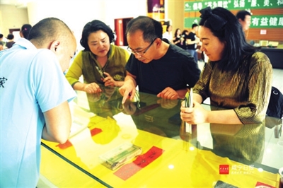 在市博物馆一楼大厅,一阵阵悦耳的丝竹之声为活动拉开序幕。舞台上,艺术家们献上一场场与茶相关的精彩文艺表演,引得参展市民掌声阵阵。舞台下,咸安区女子书画协会会长金和英女士挥毫泼墨,一首首茶诗、茶词透露出点点茶香。大厅一侧,来自咸宁市陆羽茶文化研究会的会员们,手拿一本本《茶叶知识100问》,耐心地向市民讲解茶叶科普知识。
