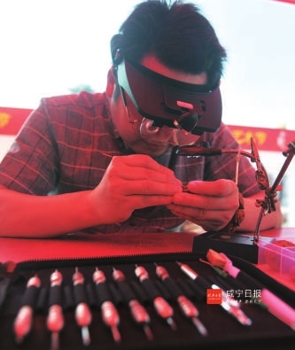 核雕是我国传统民间微型雕刻工艺,已被列入第二批国家级非物质文化遗产名录。嘉鱼的王勇是这项技艺的传承人,一个看似不起眼的桃核,经过纯手工的精雕细琢,就成了一件件精美的艺术品。王勇之前从事工业美工设计,一次偶然机会与核雕结缘便开启了微雕之路。由于核雕工艺的难度和繁复性,这项行业技艺已经濒临失传,作为我市为数不多的核雕手艺人,他现在依然坚持。