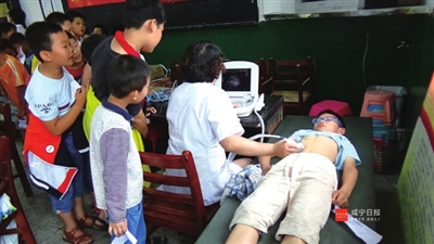 本报讯(记者叶子 通讯员格红超 田波) “来,小朋友张嘴。”、 “来,这位同学躺好,给你做心电图。”14日,嘉鱼县新街镇卫生院组织医务人员到镇中心小学免费为全校学生进行体检。