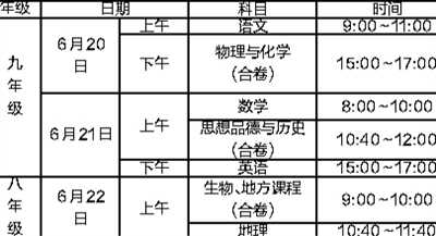同时,八年级学生将于6月22日进行学业水平考试,考试科目为生物、地方课程(合卷)、地理。