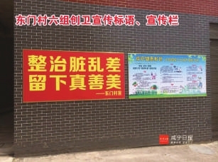 近年来,随着咸宁城市建设步伐的不断加快,该村逐渐成为名符其实的“城中村”;在这次固卫复审迎检工作中,该村成立了以党支部书记、村主任钱红云为组长的固卫复审迎检工作领导小组,下设办公室,负责协调指导全村固卫复审迎检工作开展,制定了《东门村国家卫生城市固卫复审迎检工作方案》,完善健全了各项固卫复审迎检工作制度,明确了职责要求,目标任务,时间安排等。同寸,开会动员,统一思想,提高认识,并通过开辟宣传专栏,开通电子显示屏滚动播放,贴标语,拉横幅,发放宣传资料等进行大力宣传,使全村干部群众进一步认识到开展国家卫生城市复审迎检工作,有利于改善生产生活环境,提高生活质量;有利于增强广大市民的身体健康,增加幸福指数;有利于提升城市品位,推动咸宁经济社会科学跨越发展再上新台阶。由此,该村固卫复审迎检工作准备就绪,奏响了固卫复审迎检工作冲锋号角。