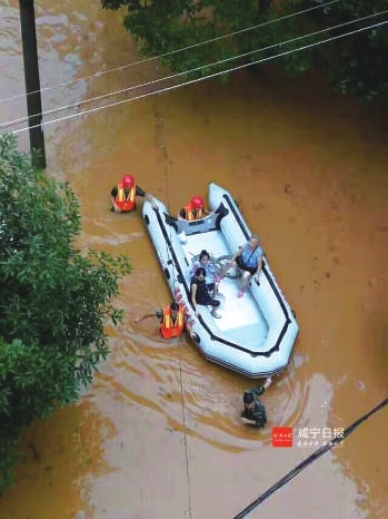 由于刘女士住在小区最里面,消防官兵用十几分钟才把橡皮艇推到刘女士住的楼下,并把她和女儿送到了安全的地方,才转身去执行新的任务。这一幕被万先生拍了下来(如图)。