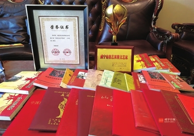 8月10日上午,记者走进了刘民的家中,处处流淌着民间文学的气息:一摞摞刚出版还泛着油墨清香的《我的田野采风调查与研究》,一本本自己编撰的民间文化作品,一柜柜摆放整齐的各地民间文化着作,一张张国家级、省市级的红色荣誉证书……这是刘民生命的色彩,这是刘民人生的光辉。