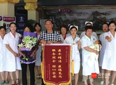 本报讯 (记者夏咸芳) “感谢咸宁科大妇产医院的樊云仙主任和医院的医生护士们,让我妻子平安生产健康宝宝!”8月11日,在咸宁科大妇产医院顺利分娩的蒋女士在出院之前,其丈夫特意将一面写着“医术精湛,医德高尚;服务周到,胜似家园”的锦旗送到该院医护人员手中,以此表达全家人对咸宁科大妇产医院全体医护人员的信任与感激。