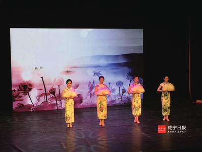 12日,武汉农村商业银行 2017年“书香润年华”读书会优秀成果展在中南剧院开幕。来自咸宁分行的四名员工身着旗袍、手舞羽毛扇集体朗诵《唐诗里的中国》,获得好评。