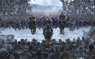 由《指环王》系列的导演彼得·杰克逊创立的特效公司“维塔工作室”是当今世界上最优秀的特效制作团队。Anders 透露,和《猩球崛起2:黎明之战》比起来,《猩球崛起3》创造了更复杂的猩猩角色。几百只猩猩,几乎每只猩猩都拥有500万根毛发,而这一切,都得益于维塔工作室强大的电脑动作捕捉技术和精湛的制作水准。在《猩球崛起3:终极之战》中,为了得到逼真的“猩猩”效果,维塔工作室动用了998名工作人员参与到幕后制作中,最多时有430多人同时为一个特技项目工作。其中电脑CPU的处理时间耗费了大约1.9亿个小时,折合起来等于5400年!而1440个特效镜头,占据了整部电影95%的镜头量。