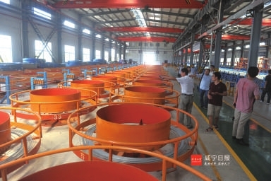 湖北欧维姆缆索制品有限公司落户在官桥镇田野高科技工业园区,始建于2014年10月,厂区占地91亩,固定资产投资1亿元。目前包括钢丝拉索和主缆两个车间,钢丝拉索生产产能达2万吨/年,悬索主缆丝股产能3万吨/年。车间长度772米,是亚太地区位居前列的超长拉索生产基地。