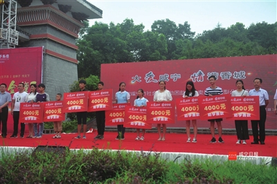 8月26日,由市民政局举办的“大爱咸宁 情满香城”2017年咸宁市社会组织“助困助学”义卖捐赠公益行活动在市区潜山国家森林公园广场举行。全市爱心企业在这里用爱心点燃希望,用行动播洒阳光,谱写感人的一幕幕。