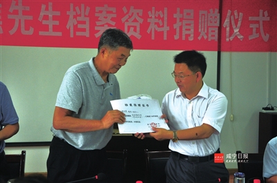 昨日,79岁的游柏樵老先生将自己毕生搜集编写的家庭档案资料捐赠给市档案馆收藏。据悉,游柏樵历任咸宁地区群艺馆副馆长、地区戏工室副主任、地区文化局革命史料征集办公室主任等职,也是我市音乐界的领路人,在革命史料、文化志、民间文艺征集等方面为咸宁作出了卓越贡献。 杜培清/摄