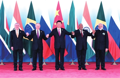 9月4日,金砖国家领导人第九次会晤在厦门国际会议中心举行。国家主席习近平主持会晤并发表题为《深化金砖伙伴关系开辟更加光明未来》的重要讲话。南非总统祖马、巴西总统特梅尔、俄罗斯总统普京、印度总理莫迪出席。图为金砖国家领导人集体合影。 (据新华社)