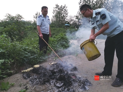 9月4日下午4时许,执法人员巡查至淦河大桥,远远望去,靠城铁咸宁南站一侧,两名中年男子和一名中年妇女正在烧纸,现场烟雾缭绕。“这里不能烧纸,你们看这到处是烟。”执法人员立即上前制止,提水将火浇灭,并将灰烬铲除。“我们不知道不能烧纸,要是知道就不会烧了。”三人均表示以后不再烧纸。