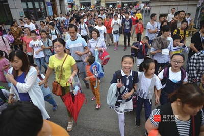 9月1日,我市各中小学校正式开学,安静了2个月的校园一下子热闹起来。记者在咸宁实验外国语学校、市实验小学、温泉中学等学校看到,度过了一个欢乐的暑假, 孩子们在家长的陪同下,高高兴兴地走进校园,开始了新学期的学习。