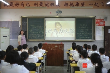 温泉中学逸夫教学楼里,七(11)班的教室内,几十名孩子坐得整整齐齐,班主任老师在讲台上讲解新生注意事项。走廊上,有几名家长透过窗户,观察着自家孩子的动静。“刚进初中,怕孩子不习惯,决定留下来看一看。”家长熊先生告诉记者。一节课之后,熊先生放心地离开了教室。