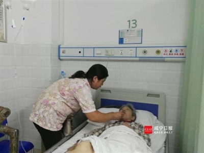 本报讯(记者葛利利 通讯员王秋琴)“您再吃一口吧!”“好了,我已经饱了,你也吃。”昨日,在咸宁市第一人民医院骨外科病房里,65岁孤寡老人颜春莲虽然摔断腿不能动,但身边围满了“闺女”,让人羡慕不已。