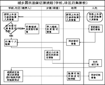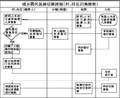 (2)通过村(社区)归集缴费:村(社区)归集居民的医疗保险费,经汇总后,按规定时限缴至农商行或邮储银行。