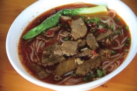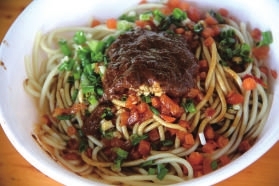 开店二十多年,陈前途坚持用自己的配方压制面条。好面粉出好面条,加上独到的烹调技艺,陈前途家的面食声名远扬,经常有温泉城区的食客舍近求远过来品尝。据介绍,面馆每天可以卖出130多斤面条。