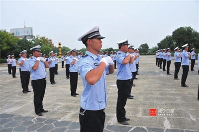 “立正,稍息......”18日下午,咸宁北站广场前口号嘹亮,数十名着装整齐的交警在此有序操练警察礼仪、队列基础动作和交通手势,动作整齐划一。据了解,从本月开始,全市交警部门组织人员开展“大练兵、大比武、大培训” 活动,厉兵秣马进行训练,进一步提升人员整体素质,备战十九大安保维稳工作。