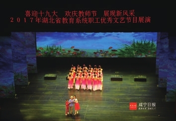 本报讯(记者 熊大平)9月6日,在第33个教师节来临之际,市直机关幼儿园和市实验小学合排的音乐情景剧《有你才有家》,代表咸宁市教育系统参加全省教职工文艺汇演。此次活动由省总工会和省教科文卫体工会主办,全省40多所高校及各地市州教育工会均选送了节目参加演出。本次我市组排节目在全省120个参演节目视频录像中,被选中参加中南民族大学《喜迎十九大 欢庆教师节 展现新风采》——2017湖北省教育系统职工文艺汇演。