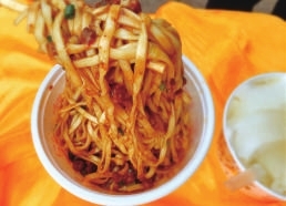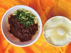 孙小东说,他家最好吃的是炸酱面,酱和别家不一样,采用的是猪前夹肉,肉绞得细。炸酱面的整个制作工艺,专门请了四川师傅来教。记者当天点了一碗不辣的炸酱面,面上铺着一层厚厚的肉酱,中宽的面条和肉酱拌匀之后卖相很好,炸酱面的口感爽滑中带着丝丝麻感。