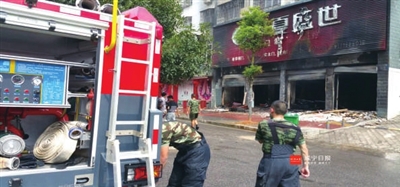 当日上午11时许,记者赶到事发现场看到,失火门面已经被烧得面目全非,里面一片狼藉。不过火情已经被赶来的消防官兵控制住,明火已经被扑灭,消防官兵正在对现场进行隐患排查。