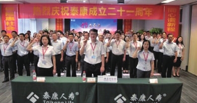 “始”志不渝,征程再启。8月22日,是泰康二十一周年华诞。嘹亮的歌声《泰康永远》在全国各大小职场响起;员工们在笑声、掌声中品尝着美味生日蛋糕;收获着与入司年限对应忠诚服务奖; 金灿灿的司徽奖在五年、十年、十五年、二十年员工手中放着异彩,每个人的脸上露出的不仅是喜悦还心中无限的感慨。