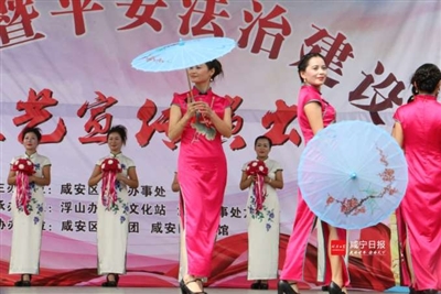 楚剧演唱、腰鼓表演、旗袍秀、舞蹈、小品、合唱……9月24日,咸安区浮山办事处、区群艺馆、区楚剧团等联合举办“党建暨平安法治建设”文艺宣传演出,赢得现场观众阵阵掌声。