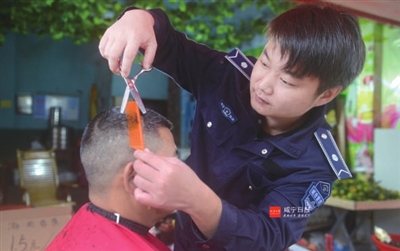 “嗯,还是你的手艺好!”16日下午4时许,咸安区城北街汉味小吃店前,店主张建阳对城管队员吴康给他理得发十分满意。