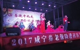 10月13日至15日,“2017咸宁市养老保险进社区巡回演出”先后在金叶社区、工程小区举办,拉开了养老保险“送文化送政策进社区”系列活动的帷幕,为社区群众献上了精彩的文艺节目,受到了广大群众的热烈欢迎。