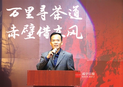 活动现场,与会嘉宾们共同观看《湖北省青(米)砖茶》宣传视频,品饮我市中华老字号茶企湖北省赵李桥茶厂所生产的三款特色青(米)砖茶。来自广东省茶文化促进会、广东省茶叶收藏与鉴赏协会等茶行业协会负责纷纷上台致辞。