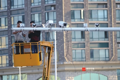 近日,记者在城区咸宁大道和银泉大道交汇红绿灯处看到,工作人员正在加紧安装摄像头。据悉,我市正加紧推进以城市管理、治安监控主要目的视频监控设施的建设,这些视频监控将在威慑预防和打击犯罪、真实记录违法、固定犯罪证据、维护社会稳定等工作中发挥不可替代的作用。