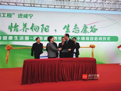 上午8时许,国龄智能养老产业投资(北京)股份有限公司总经理耿朝霞,咸安区委副书记、区长盛文军分别代表双方正式签署投资协议;咸宁市副市长刘复兴代表市政府向中国城镇化促进会提交特色小镇申请。国龄智能养老产业投资(北京)股份有限公司正式与华信(北京)基金管理有限公司签置协议,向阳湖康养特色文化小镇项目投资基金正式成立。国龄智能养老产业投资(北京)股份有限公司与中国老龄协会老年人才信息中心和上海二十冶建设有限公司签署建设协议。由此,标志着以国龄投资公司为主,华信基金注资、上海二十冶建设有限公司承建的百亿元康养项目在该区向阳湖镇正式启动。
