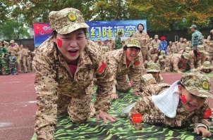 军事训练环节中,在指挥官热情洋溢的带动和组织下,活动更是高潮迭起。孩子与家长们共同开展的匍匐前进、太空漫步、两栖坦克、铁甲战车、运送弹药等科目军事演习活动把整个演习的气氛推向了高潮……海陆空三军火力全开,震慑全场,孩子们互相团结协作,家长和孩子完美搭档,拼尽全力完成指令任务。