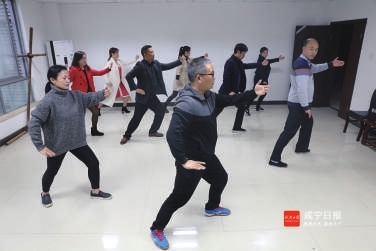 11月17日,咸安区烟草专卖局(营销部)太极拳兴趣班的学员们,在老师的带领下打出了第一拳。