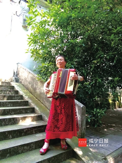 但她并不以为累,她说:“拉手风琴既锻炼了身体,又陶冶了情操,特别是当我能完整拉一首曲子时,心里乐开了花。”