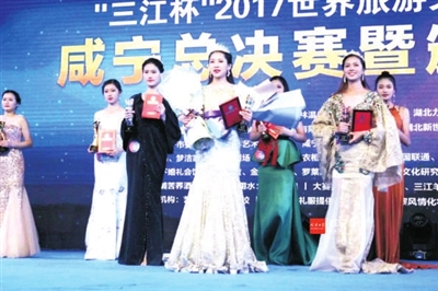 本报讯(记者 叶子 通讯员 柴倩)11月24日,“三江杯”2017世界旅游文化小姐大赛咸宁总决赛暨颁奖晚会在市人民广场落下帷幕,经过四轮角逐,来自咸宁的朱晓芬勇夺冠军。