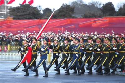 震撼大地的铿锵足音,激荡着今日中国由大向强的坚定自信,飞扬着中华民族走向复兴的壮志豪情,彰显着人民军队维护国家主权、安全、发展利益的坚定决心。