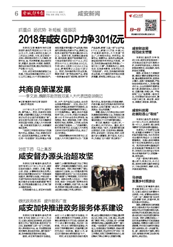2018年咸安GDP力争301亿元