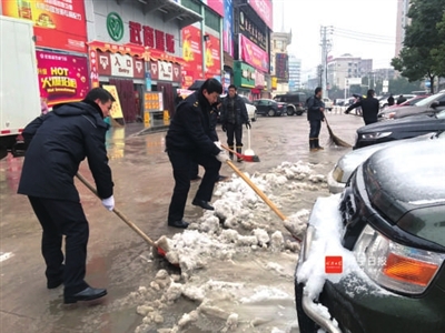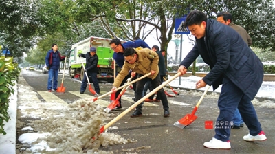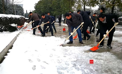 28日,市政府下发《关于开展扫雪除冰行动的紧急通知》,要求各县市区、咸宁高新区、市直各部门及所属单位组织全体干部职工,开展全城扫雪除冰行动,全城总动员、全民齐动手、突出重点地段,以实际行动扫雪除冰、保障城区出行安全畅通。当天一早,全市各级各部门纷纷响应号召,迅速行动,对城市重点路段、区域的积雪积冰进行清理,确保人民群众生产生活正常有序。
