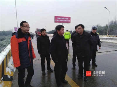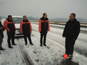 号角吹响后,该中心全体党员干部职工迎风冒雪,不畏严寒,团结一心,众志成城,踏上了抗冰雪、保畅征程。咸安区委区政府领导,市、区两级交通运输局、公路管理局领导靠前指挥,亲临河背大桥等重点、危险地段察看雪情,实地指导,极大地鼓舞了该中心全体党员干部职工战胜冰雪,确保畅通的士气。