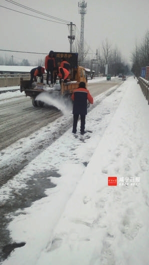 面对恶劣的天气、严峻的形势,该中心全体党员干部职工在中心领导班子的坚强领导下,沉着冷静,从容应对,科学部署,积极奔赴辖区内各条国省干线重点地段和每座桥梁,抛撒融雪剂,铲雪清扫,除冰化险,演绎出一曲曲咸安公路养护人认真履职,爱岗敬业,团结一心,众志成城抗冰雪,保畅通,保安全,传递养护正能量的奉献之歌。