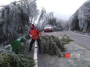 同样,马桥公路养护管理站站长张宏刚几天来一直带领8名养路工战斗坚守在与通山县交界地段的界水岭陡坡弯道上抛撒融雪剂、铲冰雪和指导机械作业铲雪,从不打“盹”。有人说:“站长,您都快50岁了,回家休息会吧,这里有我们。”可他却说:“天气再冷,再有困难,我也要同大家一起干。”像镇建设、张宏刚这样的养路人还有很多,他们在这次抗冰雪、保畅通战斗中,或多或少都遇到了身体不适或其它方面困难,可他们都表现出不畏严寒、克难奋进,坚守执着的精神;充分展现出咸安公路养护人特别能吃苦、特别能战斗的高尚品德。