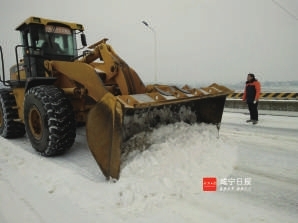 1月24日以来,我市出现低温、雨雪、冰冻天气。一时间,雨雪交加,天寒地冻;山川、河流、田野、道路、桥梁等处处积雪逐渐覆盖,堆积加厚,特别是道路、桥梁积雪严重。咸安区公路管理局养护中心列养的G107京港线、G351台小线、S319咸赵线、S208横路线等国、省干线(道)共302.13千米,大小桥梁76座下满白雪。随着气温降低,随时结冰,严重影响过往各类车辆行驶安全和行人安全。