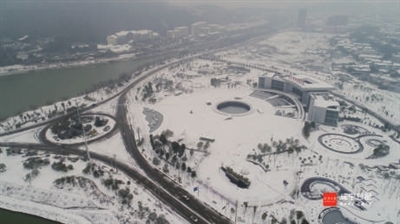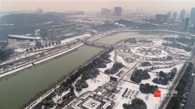 在人民广场、十六潭公园、月亮湾、太乙洞等地,从高空俯瞰,呈现出一幅银装素裹的北国景象,如同一幅美丽的画卷。