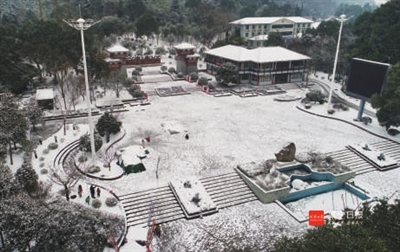 天地素白,雪花飞舞,飘落香城泉都,正应“忽如一夜春风来,千树万树梨花开”的场景。