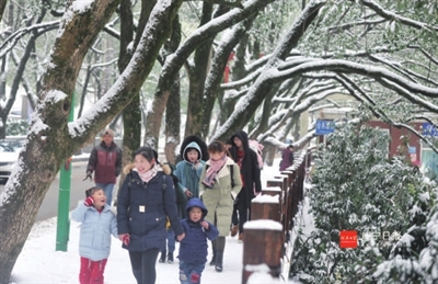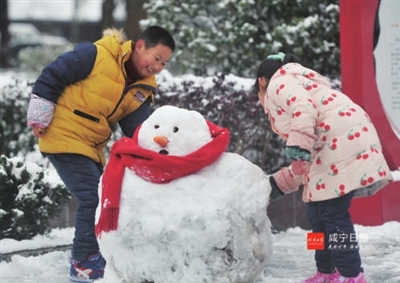 面对好一幅银妆素裹、碎玉琼瑶的雪景,市民或手机留影、或打起雪仗、堆雪人……尽情享受着冰雪世界带来的欢乐。