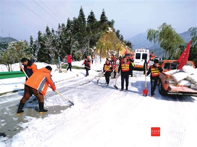 面对冰雪灾害,通城县各部门紧急动员,全民齐动手,全力保安全、保通畅、保光明,积极加强值班备勤,奔赴辖区内各结冰主干道,抛撒融雪剂、铲冰除雪,切实提高道路通行能力,保障市民出行安全。