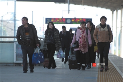 在咸宁北站的候车厅内,记者见到了从湖南娄底来咸务工的刘艳、吴灿群和张则黄一行。“我们在工地上务工,这段时间天气冷,工地提前放假,我们也可以早一点和家人相聚。”一想到马上就要回家了,刘艳脸上掩饰不住高兴。2017年收获颇丰,刘艳特地围了一条红色的围巾,寓意红红火火过新年,顺便为2018年讨个好兆头。