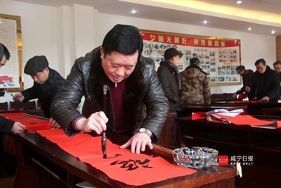 另悉,2月3日上午,市老年书画家协会和咸安区老年书画家协会的18位书法家来到咸宁高新区横沟桥东站广场开展送春联下乡活动。